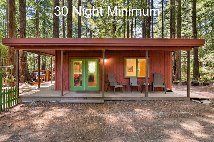 Joy Cottage is a charming, fully remodeled guest house in a forested residential neighborhood just outside of Occidental. It’s the perfect location for an extended vacation or solo work retreat. With a wrap-around covered deck, French doors, and energy-efficient windows, you’ll love the bright sunlight without the heat! Mini-split air conditioning/heating units keep the temperature comfortable inside. Outside you can relax in the hot tub surrounded by trees or dine al fresco on the patio.