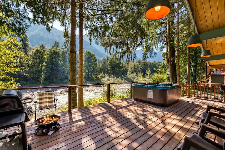Welcome all nature enthusiasts! Stargazer Studio is small but mighty, sitting peacefully with onsite access to the Skykomish River and views aplenty. This studio is perfect for a couples' weekend away or small families. Soak in the hot tub in between ski trips, hikes, or dips in the river. Crack open a book on the deck or cuddle up for a movie night by the wood stove. Stargazer Studio is ready to welcome you and your furry friends for a Cascade Mountain getaway!