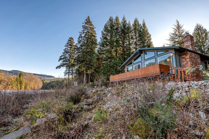 Miracle Mountain Lodge is a cozy two-bedroom home where you can relax in the hot tub and look out towards incredible river and mountain views. Enjoy easy steps down to the Skykomish River to partake in world class fishing, raft and tube trips, beach play, or just kick back and watch as eagles fly and kayaks drift by. This is the perfect place for a small family or couple of friends to get away to the peace and quiet of the mountains while still enjoying all the modern comforts of home.