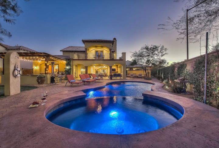 This beautiful custom estate is located in Coachella, CA, with tons of great amenities for you and your guests to enjoy such as private pool and spa, sports court, full game room and outdoor kitchen to entertain year-round. With 5 bedrooms, 5 full ensuite bathrooms and a large corner lot, there is plenty of space for everyone to come together and relax!