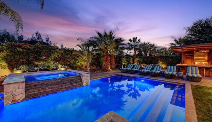 With spectacular mountain views, and an endless supply of amenities and activities, Royale is the perfect home for your next unforgettable desert vacation! With 6-bedrooms, 5.5 bathrooms and over 4,500 sqft of indoor entertainment and living space, Royale can accommodate large groups without sacrificing luxury, comfort and privacy.