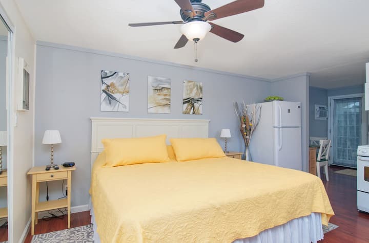In the heart of Chula Vista, you'll be surrounded by shopping and restaurant options. You're also a quick drive down for an escape to Tijuana for the day. This studio offers a full kitchen including a full size refrigerator, oven and stove. With room for two, you can enjoy a meal either at the kitchen table in the air con