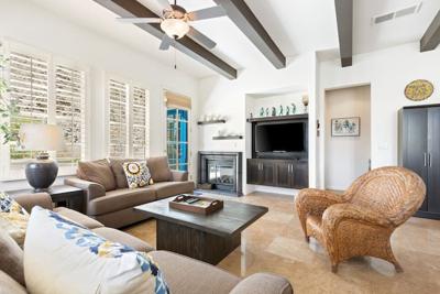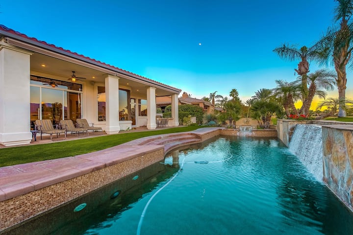 Spanish Palms is located in the private PGA West Weiskopf community, overlooking panoramic mountain views on the Nicklaus Tournament Course. This home is a delight with a saltwater pool and spa, soothing rock waterfall, lush lawn and a covered patio with outdoor dining and seating. 3000 square foot floorplan with walls of glass, gourmet kitchen, spacious great room, gas fireplace and wet bar. It's the perfect place to enjoy all the desert has to offer!