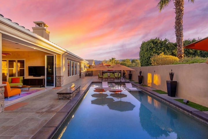 Peaceful and private, Parasol is a 4 bedroom, 3.5 bathroom 3500’ villa in La Quinta, with all the amenities you want on vacation! Sparkling pool, spa, firepit, outdoor kitchen and beautiful mountain views. Spacious interior with sun room, gourmet kitchen, comfortable bedrooms and spa-like bathrooms. It's the perfect headquarters to enjoy all our beautiful desert has to offer - golf, tennis, hiking, biking, casinos, shopping and dining.