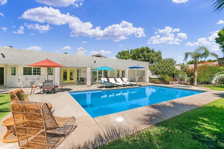 Say hello to Palm View Ranch, your new private resort in the desert, complete with volleyball court, putting green, fire pit and private pool and spa on a 1 acre lot! With 4 guest suites, 3 full bathrooms, over 3100 square feet, the home comfortably sleeps 12 guests, and is centrally located near the Indian Wells Tennis Gardens!