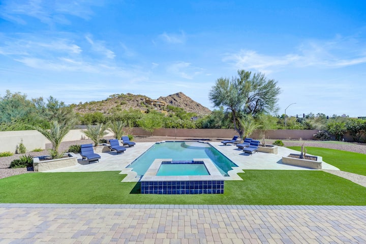 Sequestered away in the desert of Paradise Valley, you'll find this sprawling manor with rustic elements that marry luxury and comfort effortlessly.  welcomes 18 guests inside this 8 BR/6 BA home with unforgettable, stunning mountain views.