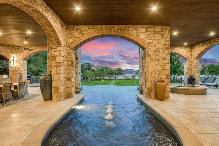 Acres on Lake Travis with privacy and lakefront views. Perfect for getaways and family reunions. Pool/hot tub, fishing piers, boathouse deck with lounge and views- expansive event lawns. The most premiere home for rent on Lake Travis.