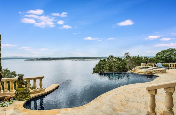 Above Lago Castille is an estate of gorgeous French Provencal architecture with touches of Mediterranean influence, is stunning from the front gates down to the private dock. The home sits amongst unrivaled landscaping and unmatched views of Lake Travis.