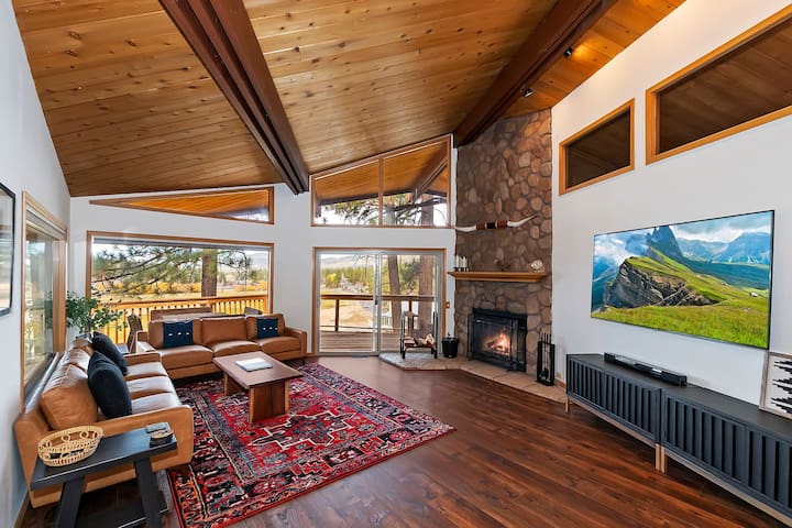 Sheephorn Lodge: Rustic yet modern chalet near golf course and Bear Mountain Ski Resort. Spacious custom 2 bed cabin with 2,101 sq/ft living space....