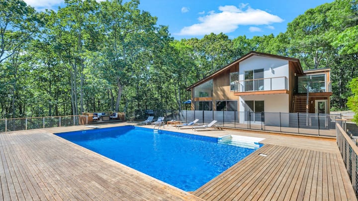 3BR/2.5BA - chic, sun-filled floor plan, airy living room, fireplace, well-equipped kitchen, and serene ensuite bedrooms each with balcony access and nature views