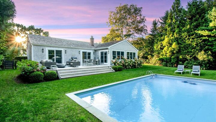 6BR/4BA w/ private backyard with heated pool, eat-in chef's kitchen, dining area, wood burning fireplace, and lots of modern amenities!