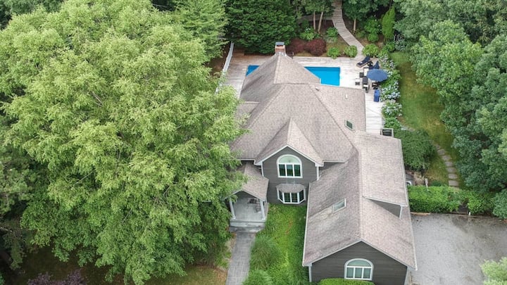 4BR/4.5BA w/ Heated Pool, Tennis, Full Basketball Court, Expanded lower level, Privacy, Minutes to Beaches and Town