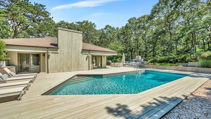 3BR/3BA with fireplaces, great room, laundry, eat-in kitchen, outdoor shower, grill, deck, heated pool, laundry, finished basement