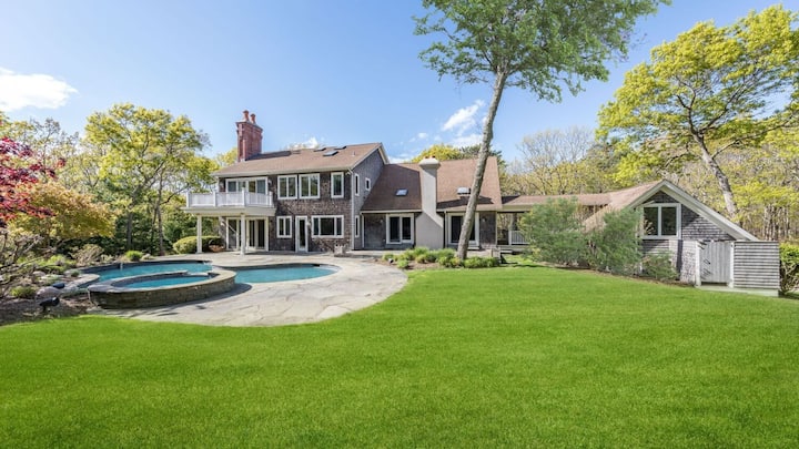 5BR/6.5BA: entertainer’s dream, light-filled spaces, three fireplaces, upper-level loft, media and game area, Chef’s kitchen, office, spacious bedrooms with private balconies