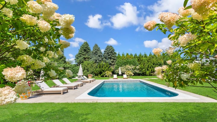 5BR/4BA w/ a great room, den, sunroom, and a sleek state-of-the-art kitchen, balcony, back patio, heated pool and more!