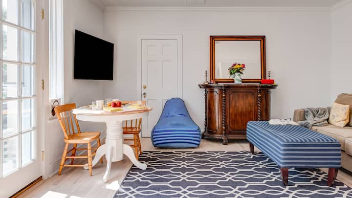 1BR/1BA—Main Street condo within walking distance of shops, restaurants, and Roger’s Beach. Unit includes flat-screen TV, in-unit washer and dryer, and a private terrace.