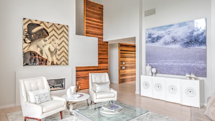 7BR/8BA w/ modern interiors and a spacious outdoor living and recreational space, sliding glass doors that lead to the patio, flows into the dining area, kitchen, and second seating area, and more!