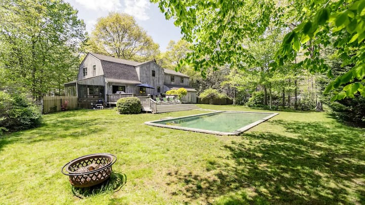 4BR/2BA w/pool, modern furnishings, exposed beams, and den that doubles as a 5th bedroom with queen sleeper sofa