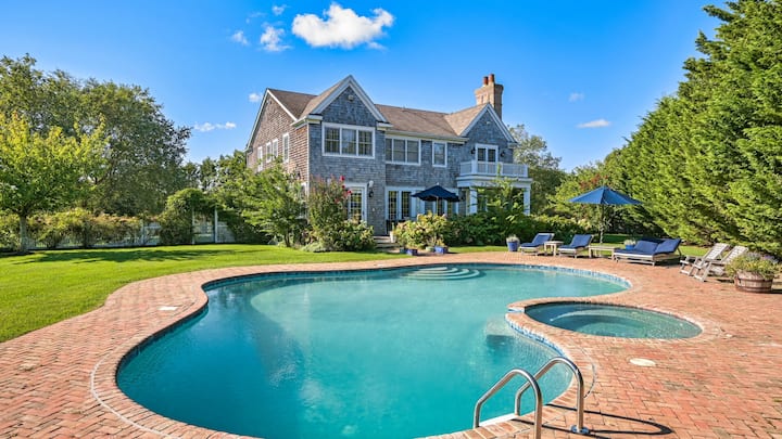6BR/6.5BA: chic interior, custom millwork, pool, tennis court, gym with Peloton bike, steam room, wine cellar, spacious bedrooms, billiards, Chef’s kitchen, grill