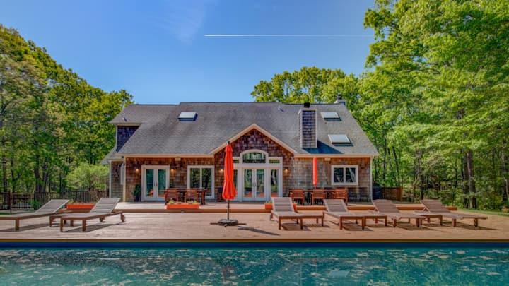 5BR/4BA w/Pool, Tennis Court, Deck, Living Room, Fireplace, TV, Dining Area, Master Suite