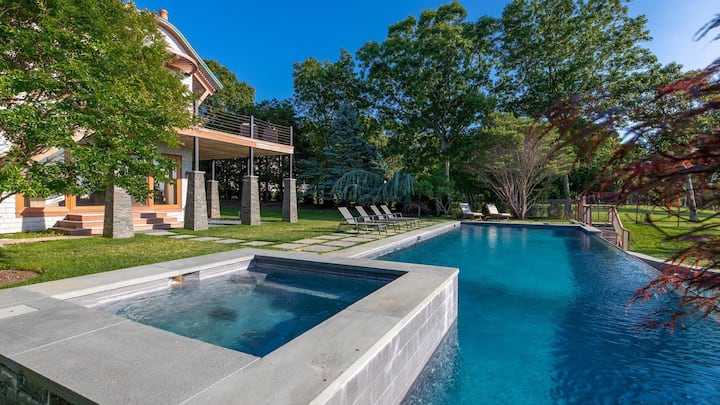 6BR/5BA: East Hampton, New Kitchen, Waterfall Spa