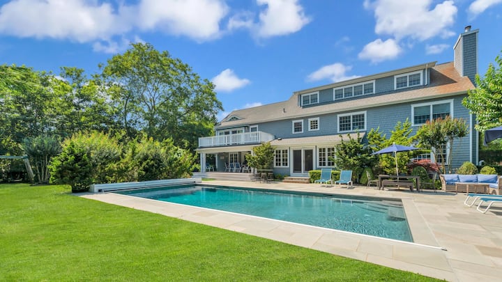 5BR/4BA: heated gunite pool, open floor plan, finished lower level media area, work out area