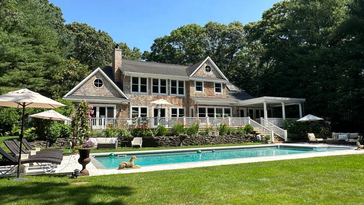 5BR/5.5BA - chic interior, two-story living room, indoor/outdoor living, multiple fireplaces, state-of-the-art Chef’s kitchen, formal dining, sunny breakfast area