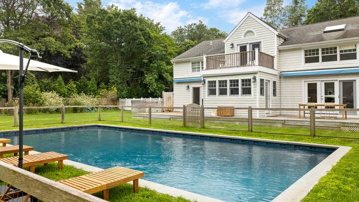 6BR/4.5BA—Light-filled open floorplan featuring contemporary furnishings, impressive chef’s kitchen, bunk room, private pool, and Tesla wall connector.