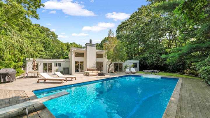 3BR/3BA: private pool, formal living and dining room, separate den with access to back deck, expansive back deck with total privacy