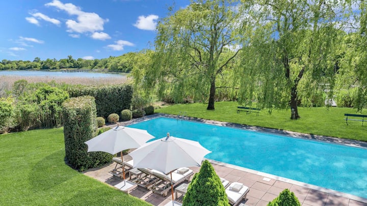 5BR/3.5BA: Waterfront, private dock, heated pool, expansive yard and outdoor space, gas BBQ, kayaks, balcony