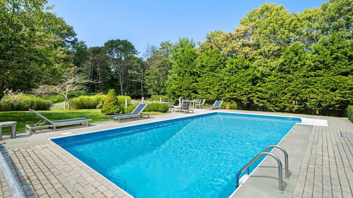 5BR/3BA: Wainscott, Heated Pool, Close to beach