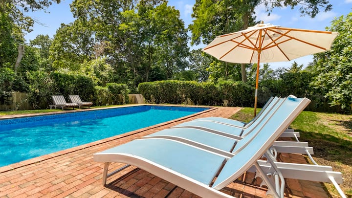 3BR/2BA—Charming traditional home, recently renovated with new flooring, fixtures, and furnishings. Quiet setting with fireplace, large kitchen, deck, and heated pool.