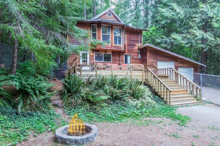 Ultimate nature escape for your family trip! 3 bedroom, two story spacious house on a private lot at the end of a cul-de-sac. Relax on the huge front deck perfect for a family cookout. Kitchen newly remodeled! The front yard is fully fenced, perfect for dogs. Many great hiking trails and outdoor activities, access to the community lake & picnic area, 8-10 minutes from the entrance of Mt. Rainier National Park. This is your getaway!
