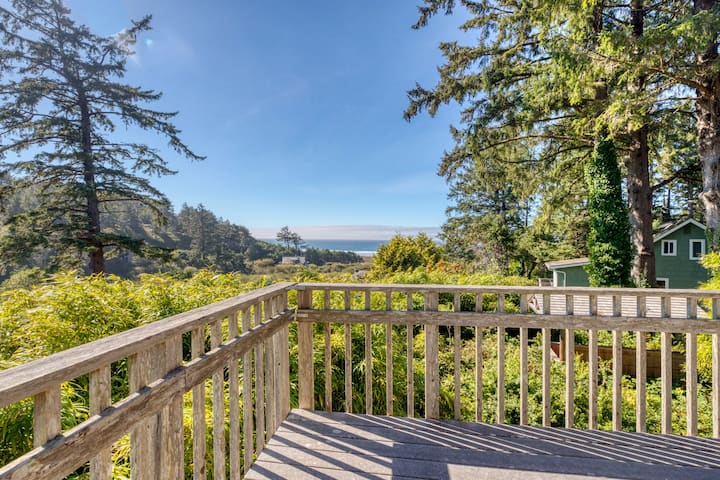 Cozy Ocean View Home in Manzanita with Large Deck, Fire Pit, and Short Walk to Neahkahnie Beach!