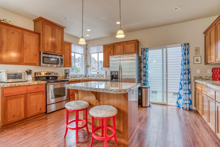 Walk to Pelican Pub and Beach from this Sleek Home with 3rd Floor Kids Room!