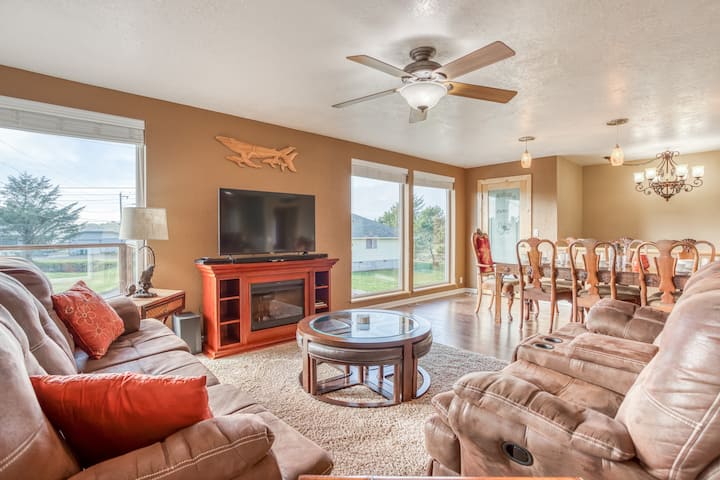 Updated Pacific City Home Boasts Private Dock, River Views, Game Room and Firepit