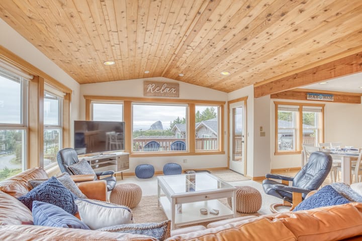 Updated Home with Ocean and Haystack Rock Views Near the Beach and Pelican Pub!