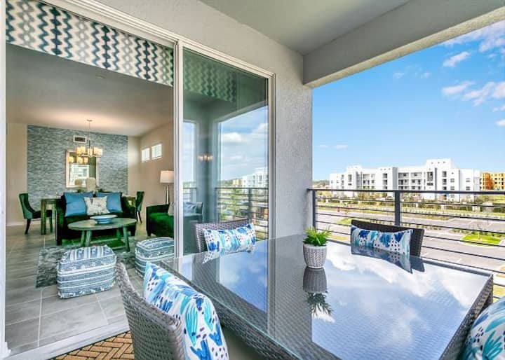 This super stylish condo sleeps 8 and is only minutes away from Mickey's doorstep, this apartment puts you right in the center of all the fun! No resort fees with Shine Villas ever - all resort facilities included!