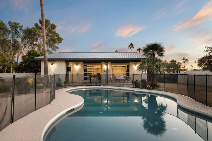Welcome! This home is filled with modern southwest style and amenities that will ensure everyone is entertained. You'll enjoy the large backyard for dining and entertaining. Head to the casita where there is a foosball table, darts, and mini-movie theater space. Close in proximity to high-end shopping, entertainment, and exclusive golf courses. This home is nearby Scottsdale Airport and is on the flight path for take-off and landing.