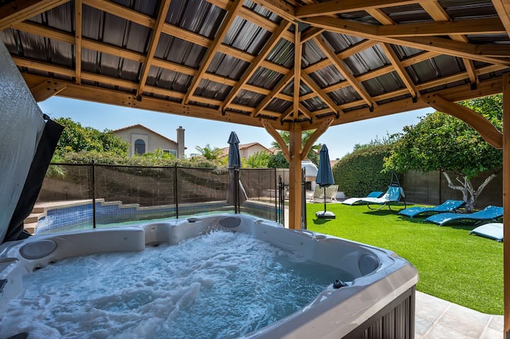 The fully enclosed backyard is a stunning area to gather around and enjoy one another's company around a fire in the cooler Arizona evenings. A beautiful, sunny outdoor space with loungers, an undercover gathering area, and a quaint Arizona fire pit are ready for you to relax with and have fun! You'll have a movie theater room and a game room with an air hockey/ping pong conversion table and a foosball table for your competitive, playful side.
