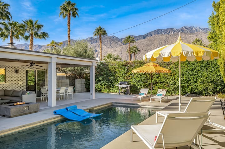 Tasteful and timeless design in this incredible update of a midcentury California Rancher in Sunrise Park. 2 Bedroom, 2 bath home plus den is perfect for a couples long weekend or a season in the desert.