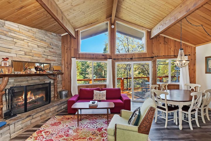 Discover Birdsong Cabin, the perfect cozy retreat in the heart of Big Bear. This chalet, nestled in the woods, is just a short walk from Bear Mount...