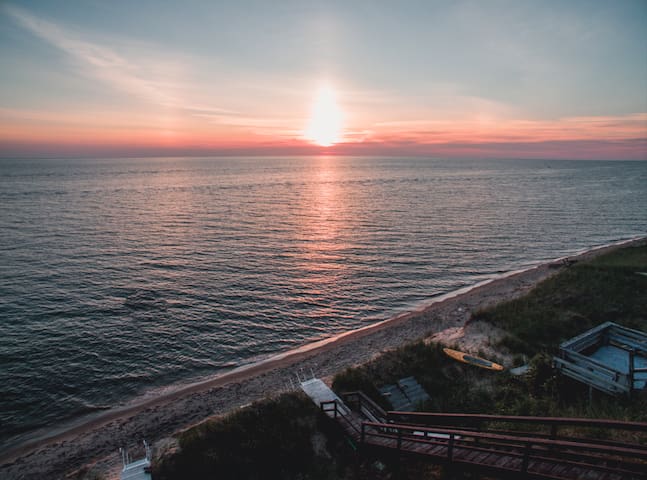 This vintage gem of a cottage is located right on Lake Michigan with access to sandy beachfront and deck overlooking the shoreline leading to share...