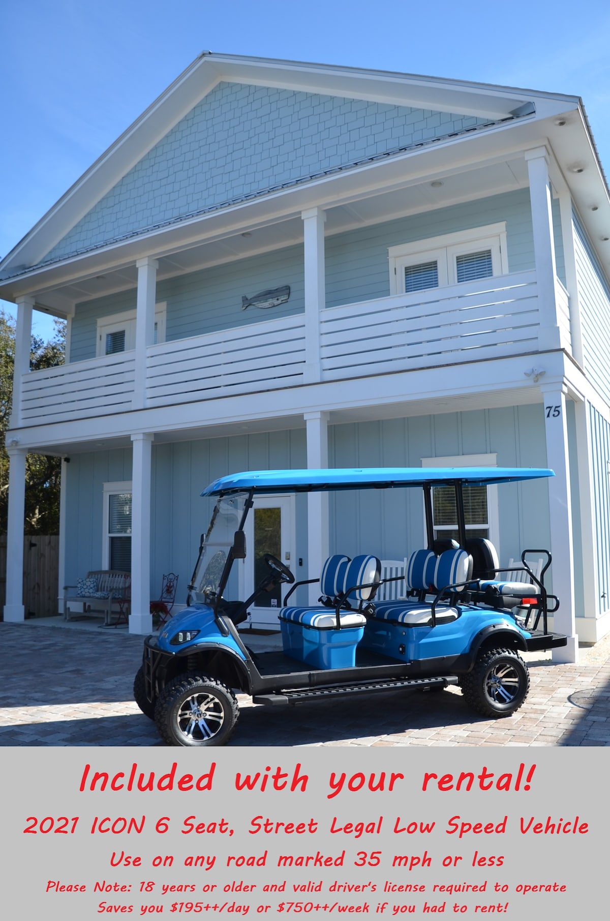 Icon 6 Seat LSV/Golf Cart, Included with your booking! (This saves you $800++a week!) Private Pool Private Beach Access! House has 6 bedrooms and 6 1/2 baths. All bedrooms have private bathrooms, 2 w/tubs - great for multiple families. The Great Room/Kitchen area opens to our private pool (can be heated for an additional fee) 2023: New larger Kitchen Table, pictures, Chaise Lounges, Extra Beach Chairs 2022-PS5 2021: 3 New Couches, Every Mattress, Decor, Graco Travel Lite Crib, High Chair The space We are located 3 short blocks from Frangista's private beach access - 3-5 minute walk. No driving to get to a beach is needed. House has a Tankless Water Heater - never run out of hot water! First Floor: 1 Queen bedroom & Private Bathroom with Tub, 1 King bedroom & Private Bathroom with shower, Open Kitchen, Dining, Great Room with 3 couches (1 of them is a queen sleeper) plus a Half Bath 2nd Floor 3 King Bedrooms with Private bathrooms & showers, 1 Bunk Room & Private Bathroom with tub, Bunk Room has 2 Full Sized Beds in the Bunk, plus Twin Trundle (pull out) Great Room has a 65” 4K Roku TV Queen and King Suites have 55” 4K Roku TV’s, Bunk Room has a 42” Roku TV The House sleeps 14-16 - 3-5 minutes to beach! Save money with: no "resort fees" and the $750-900++ the lsv/golf cart would cost to rent! The house has Cox gigablast internet, WiFi download speeds are 325-400 mbs down, 32-35 mbs up in every room (tested on iPhone 11 Pro) Ethernet to router is 980ish down and 32-35 up. Parking accommodates 4-6 vehicles depending on size/types! Guest access Access to the house, pool area, and parking. 1 owner’s closet and storage under stairs is inaccessible. Other things to note Pool Cleaning is every Friday throughout the year. May thru September is every Wednesday and Saturday. Pool will need to be clear these 10-15 minutes when they arrive. Pool Heating fee is $35 per day extra if requested Please bring beach towels!