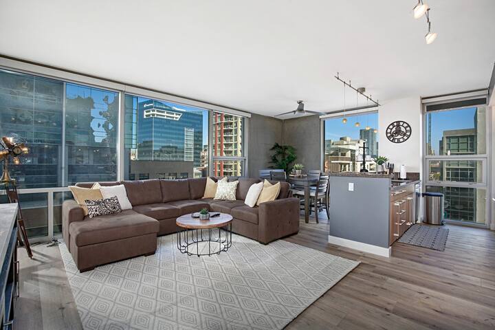 This stylish condo is the perfect place to visit or work from home! With 2 large bedrooms and bathrooms, a spacious living room and kitchen, speedy...